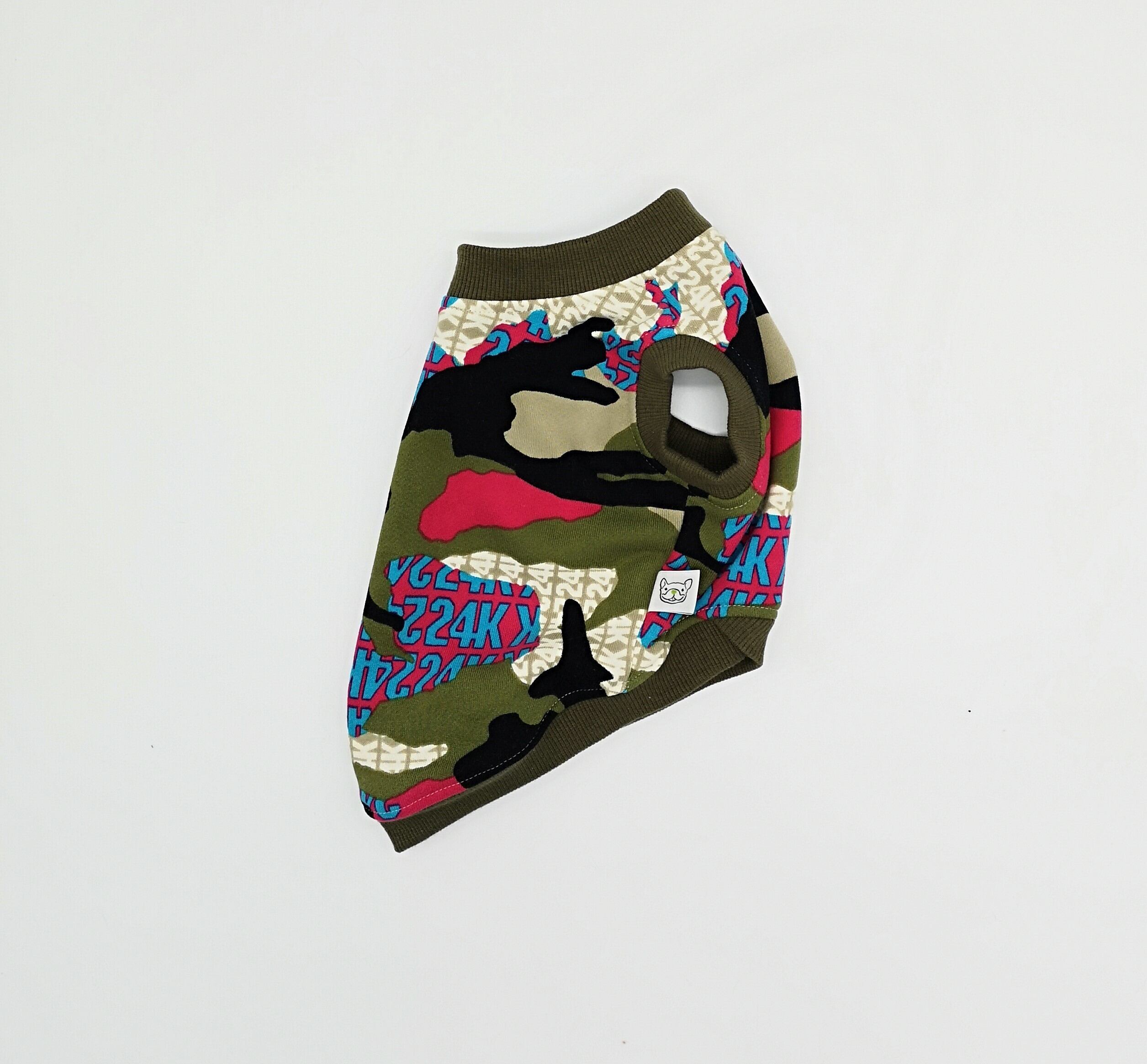 パッションピンクとブルーが効いたカラフルでパンチの効いた迷彩柄のタンクトップです。
